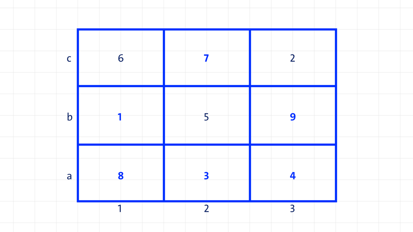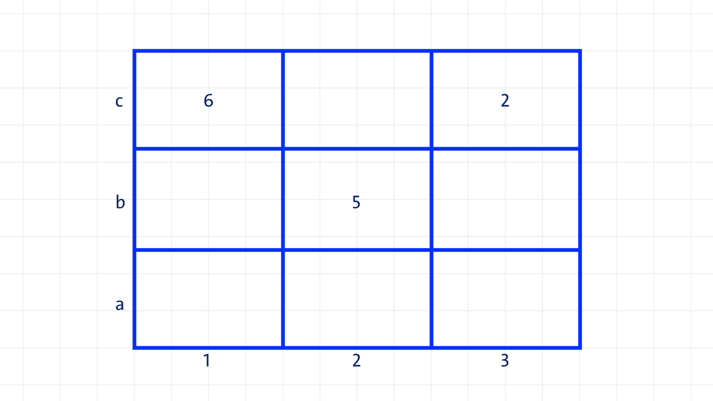a) Die Ziffer 6 befindet sich im Feld (1|c), die Ziffer 2 befindet sich im Feld (3|c) und die Ziffer 5 befindet sich im Feld (2|b). Trage die fehlenden Ziffern 1, 3, 4, 7, 8 und 9 so ein, dass die Summe in jeder Zeile und in jeder Spalte und in den beiden Diagonalen die Zahl 15 ergibt. b) Ordne dann den entsprechenden Ziffern die Lage im Quadrat zu.