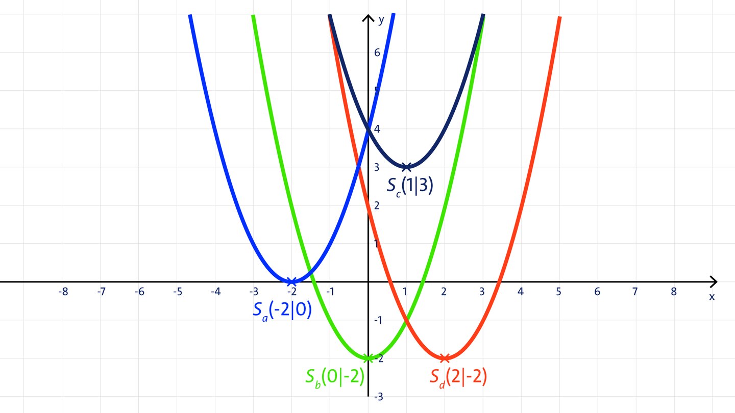 Bestimme zu der angegebenen Funktion den Scheitelpunkt S der zugehörigen Parabel: