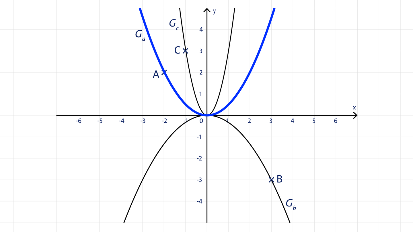 Die abgebildeten Parabeln im Koordinatensystem haben die Funktionsgleichungen y = ax².