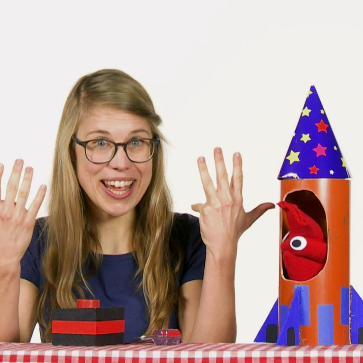 Socke hat ein Raumschiff gebaut. Esther glaubt nicht, dass das Raumschiff starten kann, zählt aber trotzdem den Countdown. Wird Socke abheben?
