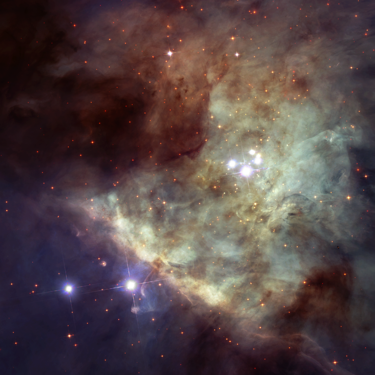 Und woraus entstehen sie? Dazu hat man den Nebel näher untersucht: In ihm gibt es dichte Wolken aus Staub und vor allem dem Gas Wasserstoff – dem Stoff, aus dem Sterne bestehen. Die Gaswolken müssen also der Ursprung der Sterne sein.