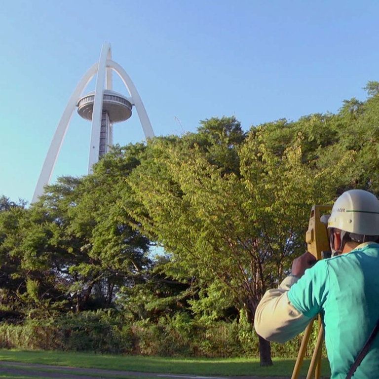Was passiert eigentlich, wenn ein 139 Meter hoher Stahlturm von der Sonne erwärmt wird? Mit Thermometern messen wir, wie sich die Temperatur am Turm im Laufe eines Tages verändert. Außerdem benutzen wir ein spezielles Messgerät, um jeweils die genaue Höhe des Turms zu ermitteln.