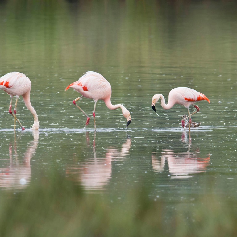 Ohne diese Pigmente entfärbt es sich nach einiger Zeit wieder. Die Pigmente färben auch die nahrhafte Kropfmilch rot, mit der die Eltern ihren Nachwuchs in den ersten Lebenswochen füttern. Auch wenn Flamingos sehr gut an das Leben in salziger Umgebung angepasst sind – sie finden auch in Süßgewässern Nahrung und können dort brüten.