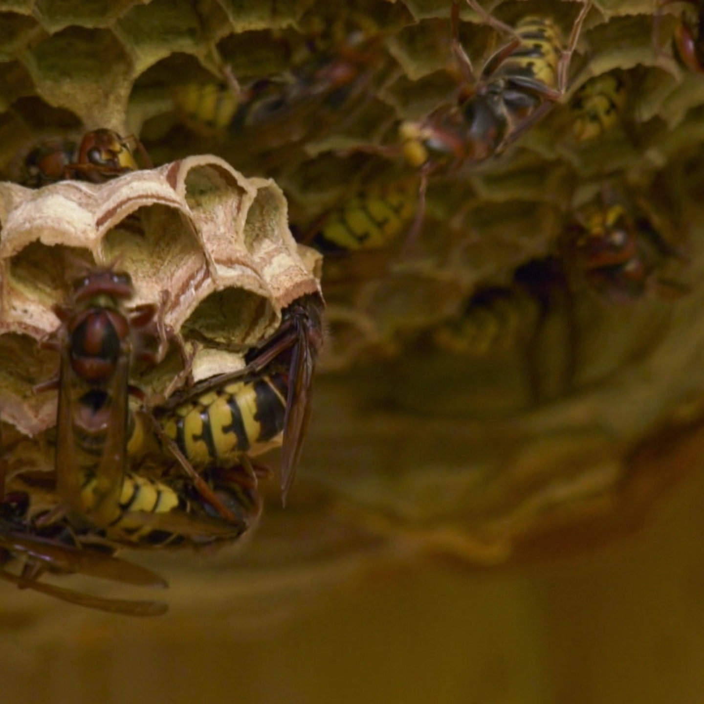 Die einheimische Hornisse zählt zu den besonders geschützten Arten. Sie darf nicht getötet und ihr Nest darf nicht zerstört werden. Sollten sich Hornissen in einem Haus einnisten, ist die Hilfe eines Spezialisten gefragt. Der Fachmann saugt die Insekten außerhalb des Nestes vorsichtig ab und verstaut sie in einer Kiste. Wenn nur noch Königin, Ammen und Larven im Nest sind, kann es entfernt und an einen neuen Ort umgesiedelt werden.