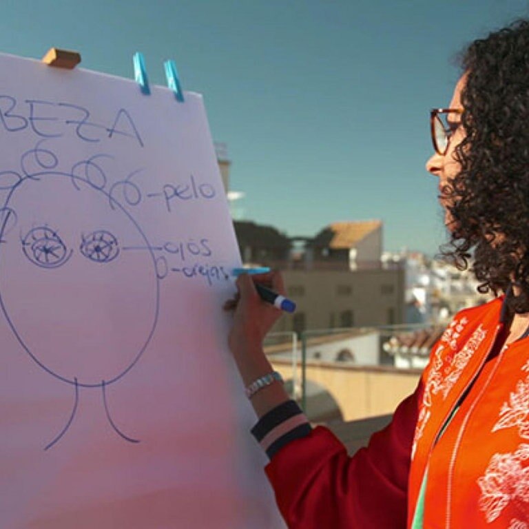 Moderatorin Tika Lahne hat verschiedene Aufgaben zum Spanischlernen für den 14-jährigen Carl im Gepäck. Zuerst lernt er die spanischen Wörter für verschiedene Körperteile.