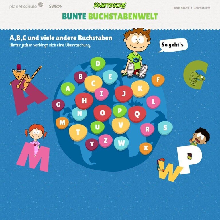 Zu allen 26 Buchstaben des Alphabets gibt es hier witzige Bilder und jeweils einen Satz, passend zu den Buchstaben. Welche weiteren Wörter fangen mit dem jeweiligen Buchstaben an? Bis zu sechs Wörter können eingetragen werden. Alles ist möglich, der Phantasie sind keine Grenzen gesetzt. Hauptsache der Anfangsbuchstabe ist richtig. Alle Buchstabenseiten lassen sich auch ausdrucken.