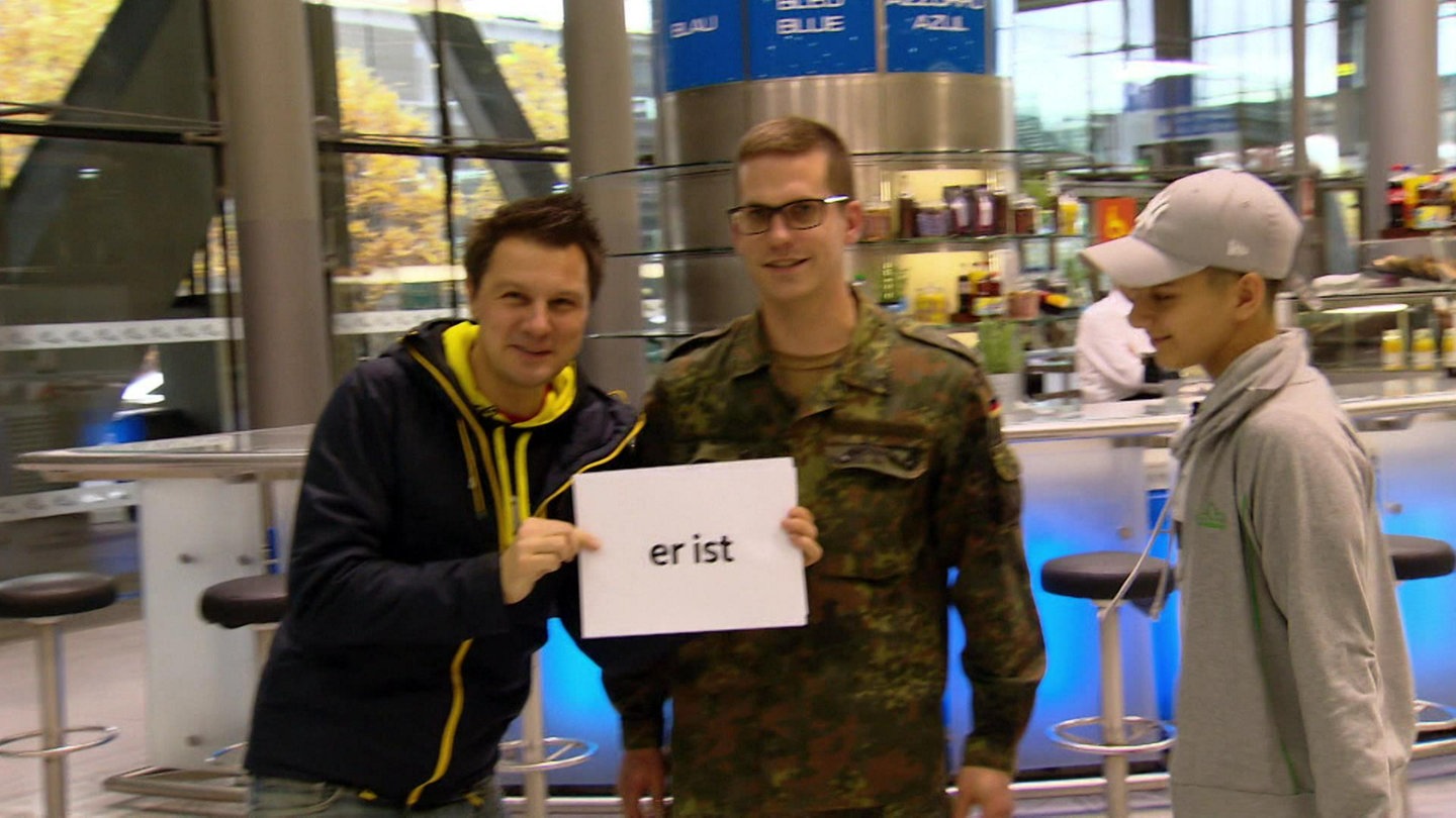 Iliya und Moderator André Gatzke sind am Köln/Bonner Flughafen. Hier treffen sie jede Menge Leute. Genau der richtige Ort, um das wichtige deutsche Verb „sein“ zu studieren. Die Reisenden verraten viel über sich: Manche sind Väter, manche Brüder, andere verraten ihren Beruf. Die beiden treffen Fahrer, Hausfrauen und einen Hausmeister.